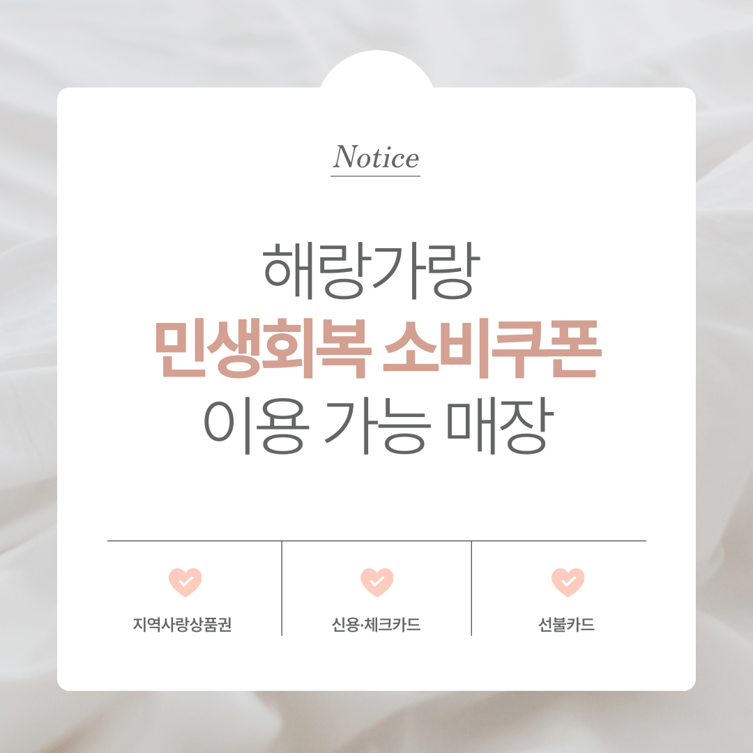 전 국민에게 지급되는 민생회복소비쿠폰,이제 해랑가랑에서도 사용하실 수 있어요!